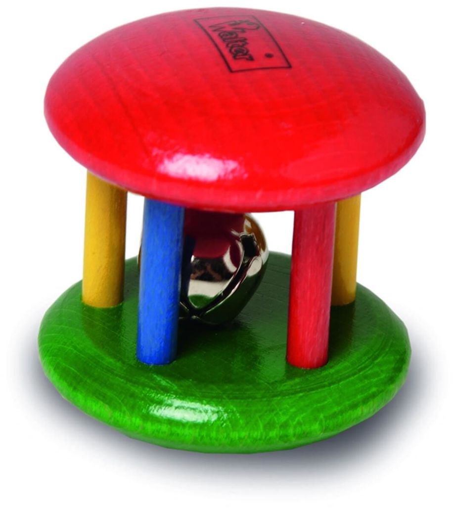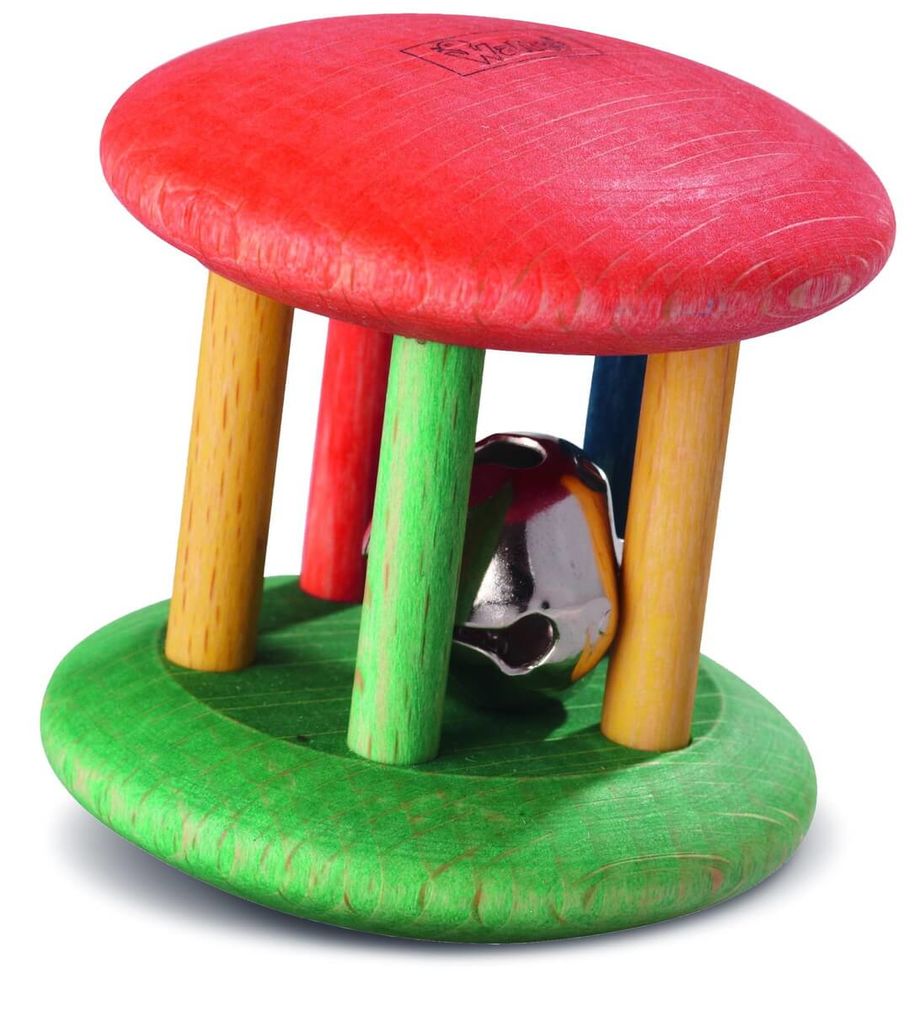 Rassel- und Klingelspass zum Hören, Fühlen und Greifen. Die Rolle ist aus hochwertigem Ahornholz hergestellt. Der erste rollende Begleiter für die Krabbeldecke. Ein definitiv kindgerecht gestaltetes Babyspielzeug zum (Be-) Greifen, Lauschen und Spüren. Das Glöckchen klingt im Holz-Käfig noch nicht zu laut. Das Ahornholz ist mit Farben auf Wasserbasis lackiert und somit absolut speichelecht. Ein Erlebnis für die Sinne des Babys. Mit Prädikat "spiel gut" ausgezeichnet.