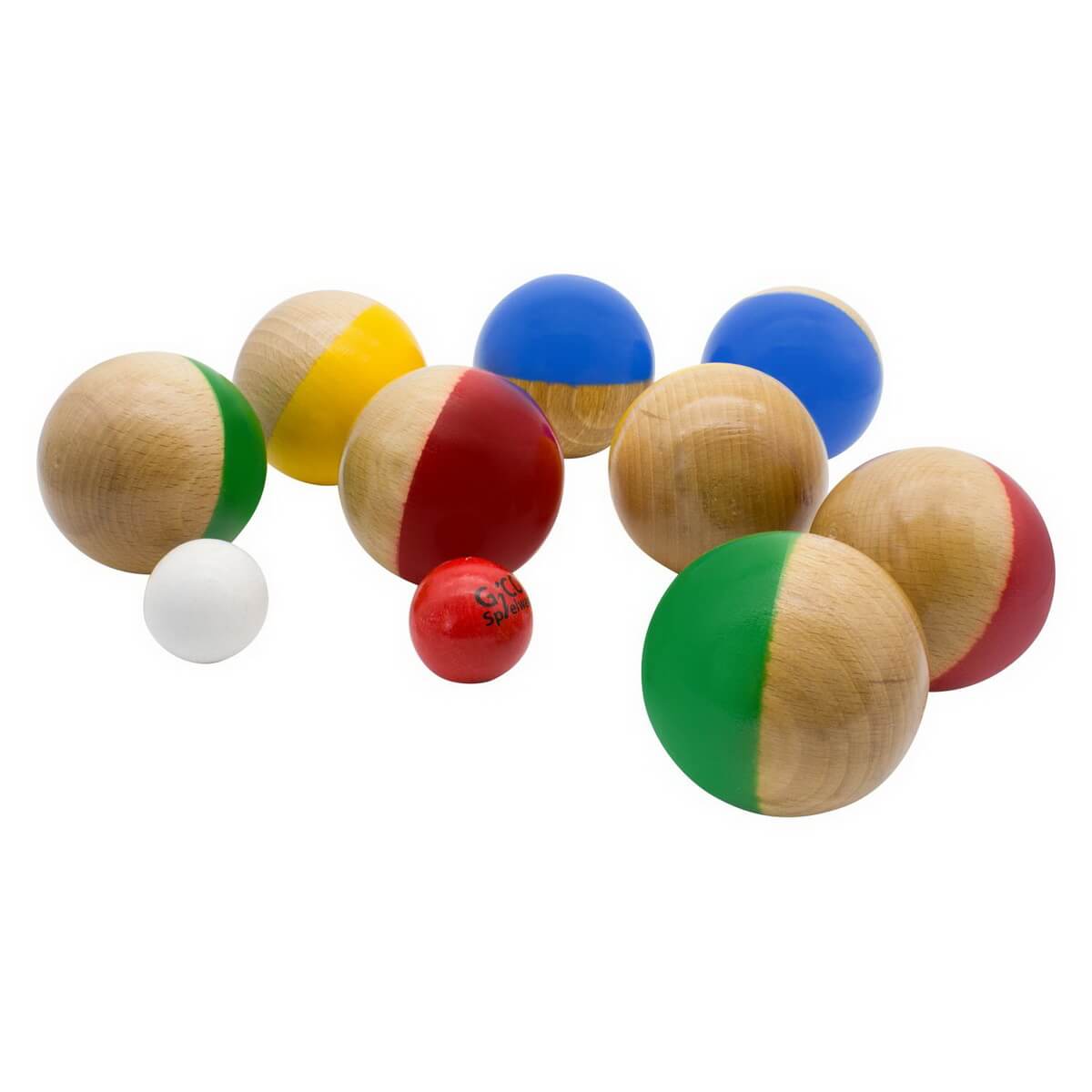 Boccia Spiel aus Massivholz Ein echtes Bocciaspiel mit 8 Kugeln aus Massivholz lackiert. Durchmesser je ca. 7 cm pro Kugel, Gewicht ca. 130 g / Kugel incl. 2 Zielkugeln "Schweinchen" und Anleitung und Tragenetz