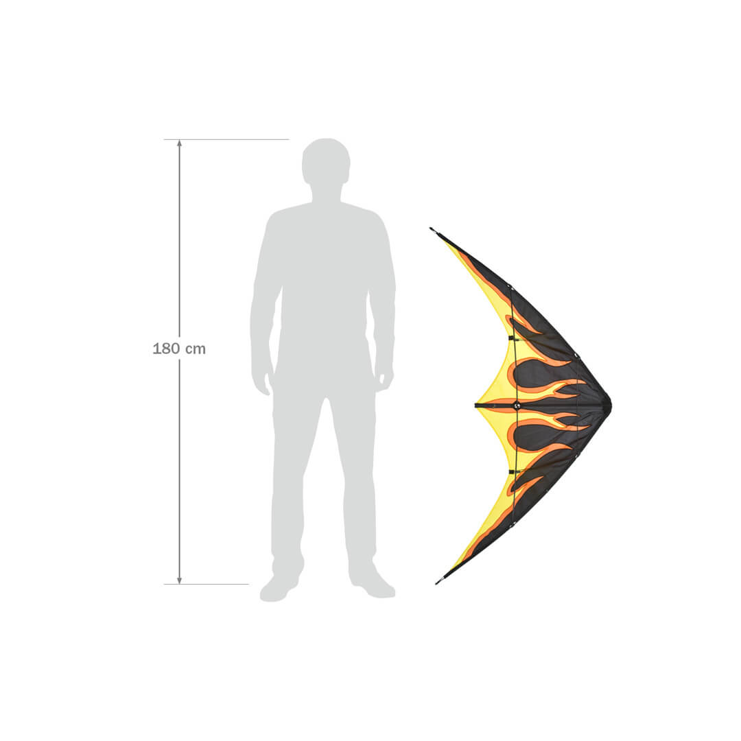 Der BEBOP ist ein sehr einfach zu fliegender Lenkdrachen für Piloten ab 8 Jahren. Sein komplett aus 4 mm Fiberglasrohr gefertigtes Gerüst verleiht ihm einerseits schon bei recht wenig Wind gute Flugeigenschaften, andererseits eine hohe Flexibilität und große Knautschzone bei Abstürzen. Das kräftige Segelmaterial trägt noch weiter zur Stabilität des Drachens bei. Durch seine - schon seit einiger Zeit beim Yukon bewährte - 4-Punkt-Gleitwaage ist der Drachen immer optimal eingestellt und das Gerüst wird auch bei kräftigem Wind optimal gestützt. Der Drachen fliegt sehr leise und ist deshalb auch für das Fliegen am Strand optimal geeignet. Die Flugeigenschaften des BEBOP wurden speziell auf die Bedürfnisse von Anfängern zugeschnitten. Das Windfenster ist groß, die Kontrolle in dem weiten Windbereich sehr einfach und der Drachen dreht nicht nach. Spannweite: 145 cm Standhöhe: 69 cm Segel: Ripstop-Polyester Stäbe: Fiberglas 4+5 mm Schnur: inkl., Polyester 20 kp, 2 x 20 m auf Winder mit Schlaufen Wind: 2,5-5 Bft. (14-38 km/h, 9-24 mph) Alter: ab 8 Jahre