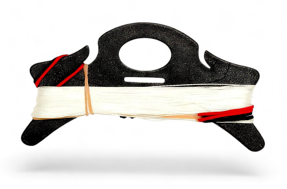 Lenkset aus 2 Dyneema-Leinen á 35 mtr, Bruchlast 180 daN (dekaNewton, 1 daN entspricht ca. 1 kg), beide Schnüre gemeinsam auf einem Winder aufgewickelt.