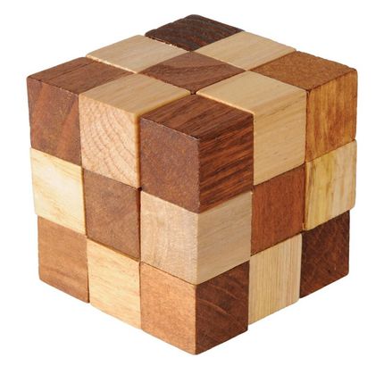 Knobelwürfel Würfelschlange, Holz, 3x3x3, mit Gummiband, 45m
