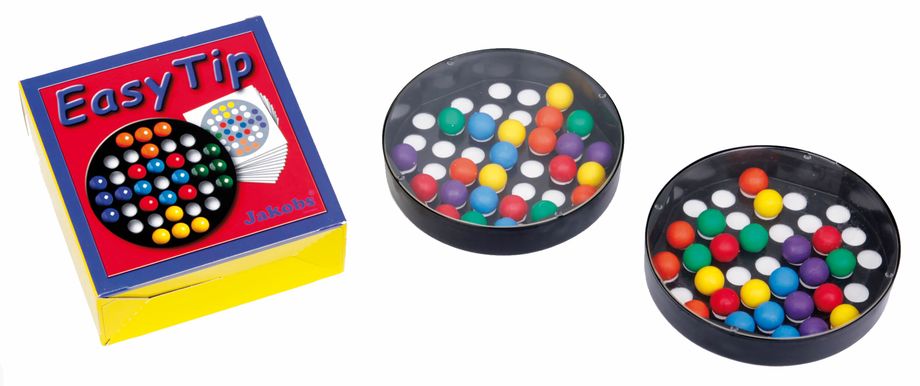 Ein Klassiker - Ein Vorlagemuster wird ausgesucht und der Spieler versucht das Muster in der Spielbox nachzulegen, indem er die entsprechenden Spielkugeln mit den Fingerspitzen bewegt und an die richtige Position legt. Sieger ist, wer schnell und flink das richtige Muster gelegt hat. Die Vorlagekarten fangen übersichtlich und klar gegliedert an und steigern in der Abfolge den Schwierigkeitsgrad. 2 runde Spielboxen aus Kunststoff mit durchsichtiger Abdeckung aus Plexiglas Ø 12,3 cm, mit je 24 Spielkugeln in 6 Farben und ein Spielkartenfächer mit 12 strukturierten Vorlagekarten. Verpackt im praktischen Karton. Für 2 oder mehr Spieler, Alter 3+ Jahre. Zur Förderung der Auge-Hand-Koordination, Farben- und Formerkennung sowie Zuordnung, Feinmotorik, taktile Wahrnehmung, Geschicklichkeit und Konzentration. Für den Bereich Spiel und Didaktik/Edukation, Therapie, Schule, Warteraum und Seniorenarbeit.