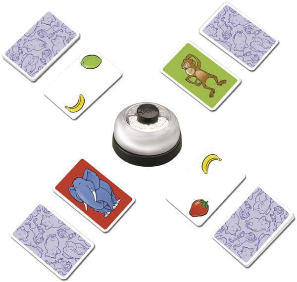 Elefant, Affe und Schwein durchstreifen den Urwald auf der Suche nach fruchtigen Leckereien. Die Spieler helfen dabei. Reihum deckt jeder Spieler eine Karte auf. Immer wenn zwei identische Früchtekarten zu sehen sind oder ein Tier mit seinen Lieblingsfrüchten, müssen die Spieler ganz schnell auf die Glocke schlagen. Wer am schnellsten klingelt, erhält alle offenliegenden Ablagestapel. Ziel des turbulenten Spiels ist es, die meisten Karten zu gewinnen.