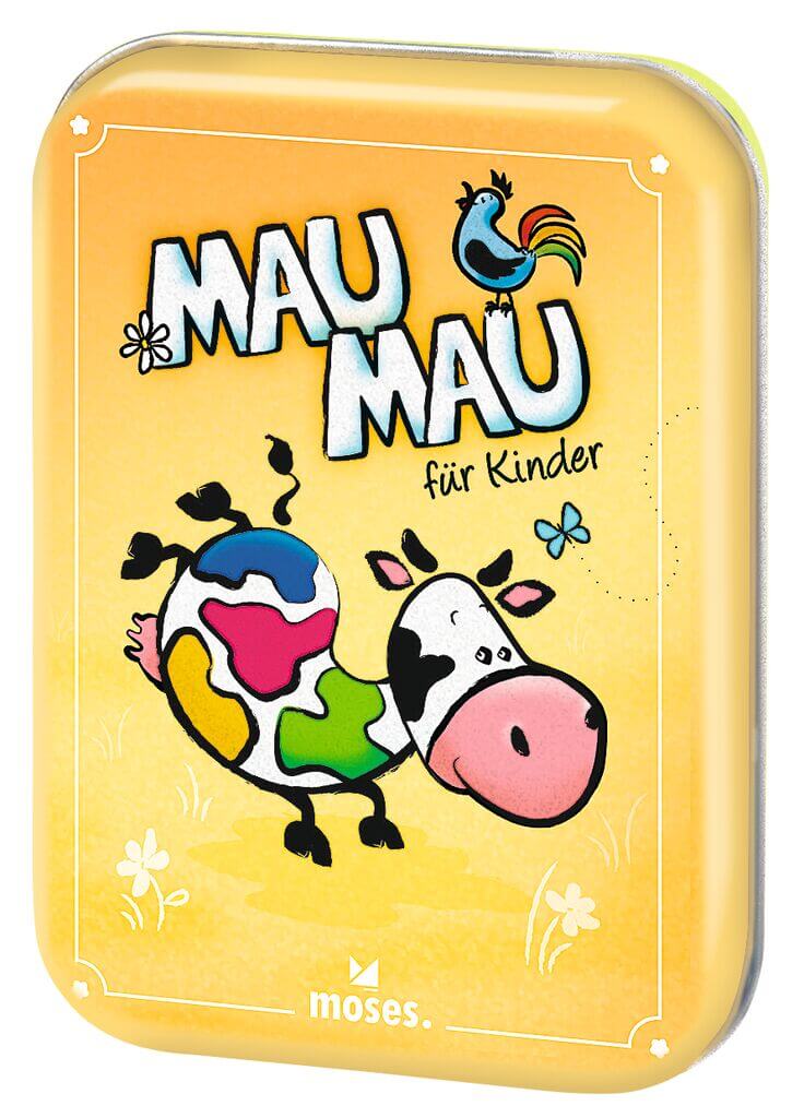 Mau-Mau ist ein wahrer Dauerbrenner unter den Kartenspielen. Gerade bei Kindern erfreut es sich großer Beliebtheit und sorgt auch an regnerischen Tagen für spannende Unterhaltung. Den Spiele-Klassiker gibt es jetzt auch in einer Variante extra für Kinder ab 5 Jahren. Das kindlich-bunte Design sorgt auf jeden Fall für gute Laune bei den Jüngsten und die aufgedruckten Bauernhoftiere erhöhen den Spaßfaktor. So erlaubt die bunte Kuh einen Farbwechsel, wohingegen das Schlaf-Schaf dafür sorgt, dass man eine Runde aussetzen muss. Die Regeln sind im wahrsten Sinn des Wortes kinderleicht: Jeder hat 5 Karten auf der Hand und versucht, diese so schnell wie möglich loszuwerden. Es dürfen reihum Karten mit der gleichen Farbe oder der gleichen Zahl auf den Ablagestapel gelegt werden. Verschiedene Sonderkarten, wie die +2, der Richtungswechsel und das Aussetzen sorgen für doppelten Spielspaß und bringen den ein oder anderen ganz schön ins Schwitzen. Dann kann der spannende Wettkampf ja beginnen - wer wird wohl als Erster seine Karten los? Inhalt + 36 Spielkarten + 1 Spielanleitung Gestaltung: Anoka Design Studio
