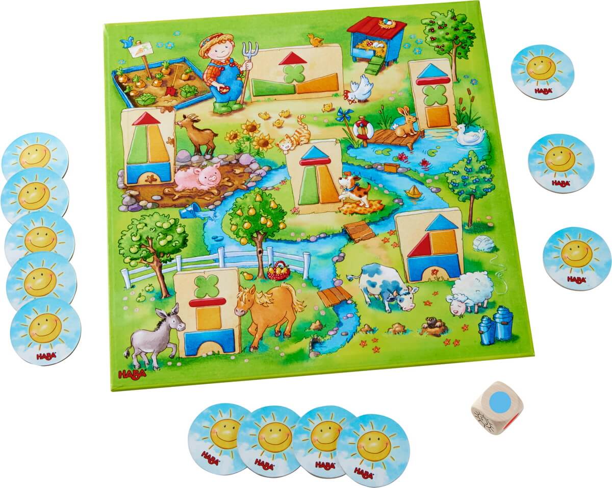 Die abwechslungsreiche „Spielesammlung“ aus der Spieleserie „Meine ersten Spiele“ von HABA bringt Kindern ab 2 Jahren anhand einer Bauernhofwelt vielseitige Spielformen wie Domino, Würfel-, Schau-genau- oder Memo-Spiel näher. Ob Farben und Formen oder Früchte und Tiere – das umfangreiche Spielmaterial aus Holz und Pappe liegt schon bei den Kleinsten gut in der Hand. Die Sammlung vereint Klassiker mit modernen Spielen. Anhand von 10 Spielvarianten trainieren 1 bis 3 neugierige Bauernhofbesucher Auge-Hand-Koordination und Merkfähigkeit genauso wie das freie Spielen und ein erstes Regelverständnis. Die Spielserie „Meine ersten Spiele“ führt kleine Weltentdecker mit besonders einfachen Regeln an Brettspiele heran.