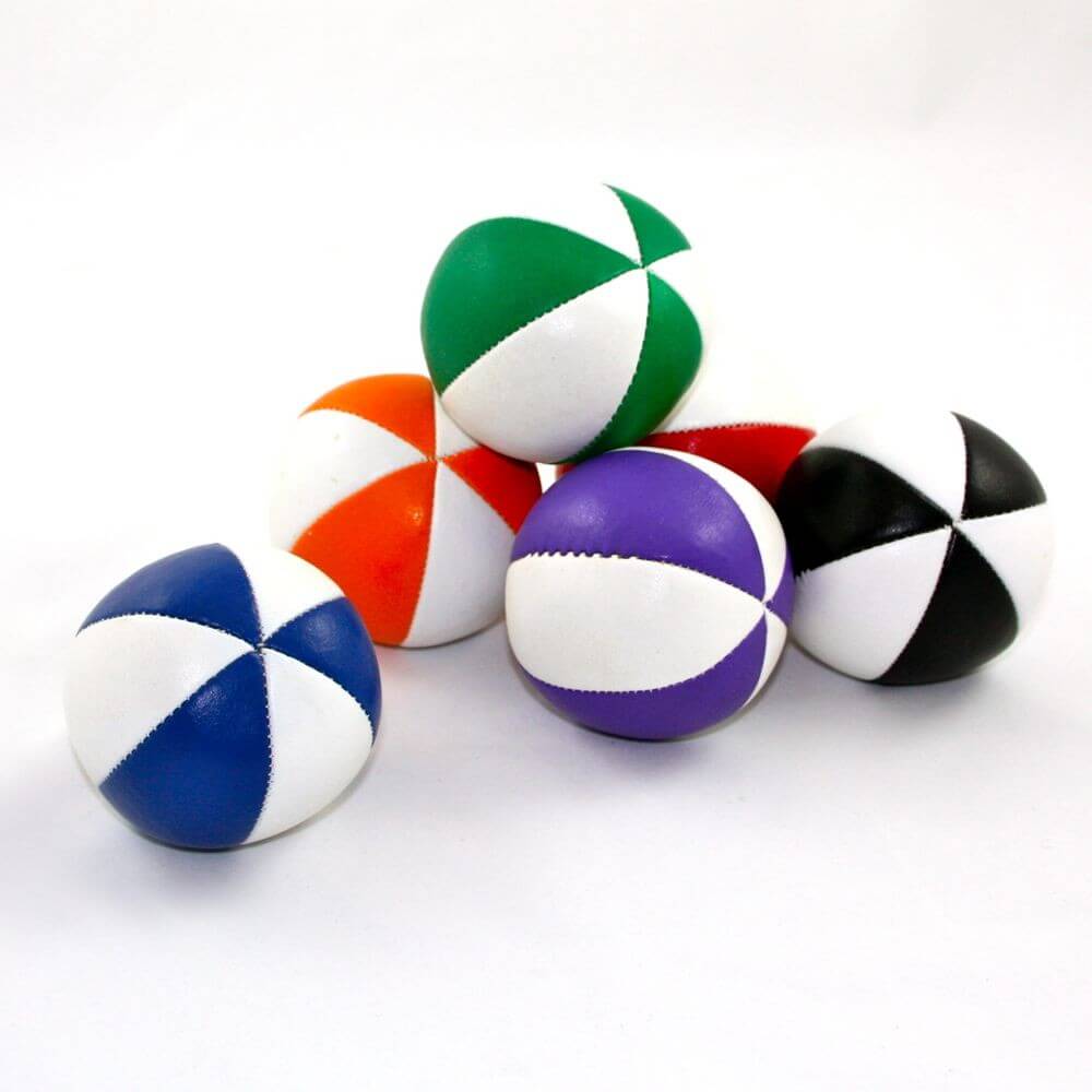 Jonglierball fest, 68mm, 135gr, 6-teilig, weiß+Farbe, 6-pane