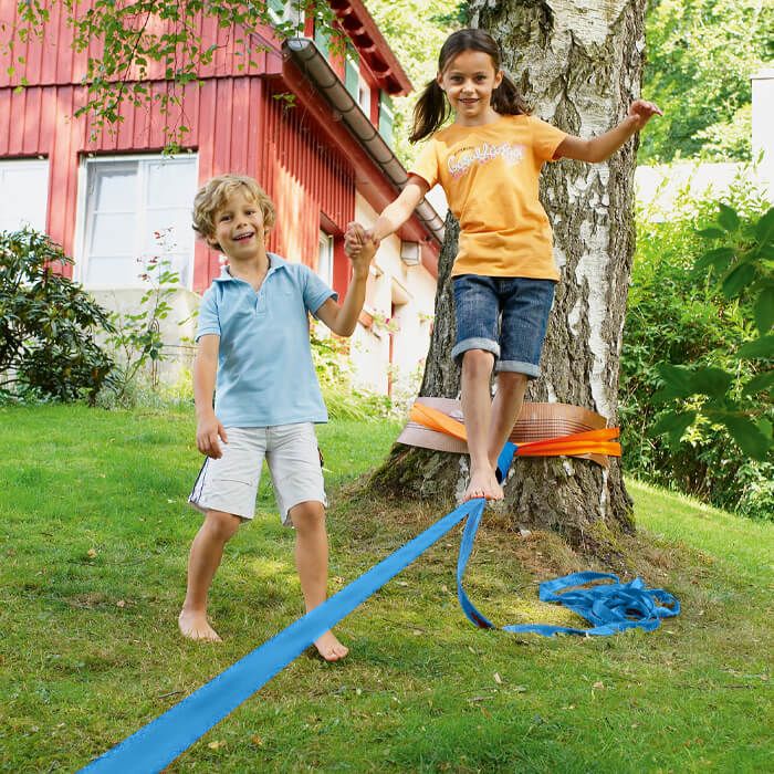 Balancierband zum Spannen zwischen zwei festen Punkten. Das Band kann überall aufgebaut werden, wo sich geeignete Fixierpunkte befinden (z.B. Bäume, Pfähle, Säulen). Die Anforderungen des Slacklining an den Sportler sind das Zusammenspiel von Balance, Konzentration und Koordination. Ideales Zusatztraining für Sportarten wie Klettern, Skifahren, Kampfsport, Reiten, Voltigieren, Surfen und andere Sportarten, die ein gutes Gleichgewichtsgefühl voraussetzen. Das 50 mm breite Band macht es auch ungeübten Slackline-Enthusiasten leicht, diesen fantastischen Sport mit raschen Erfolgserlebnissen zu entdecken. Technische Spezifikationen: - Band: Polyester-Spannband mit geschützter Befestigungsschlaufe, 50 mm breit, 15 Meter lang. - Ratsche: Befestigt an 50 mm breitem und - 2 Meter langem Spannband mit geschützter Befestigungsschlaufe. - Bruchlast: 3000 kg - Maximales Benutzergewicht: 150 kg - Inklusive ausführlicher Gebrauchsanleitung.