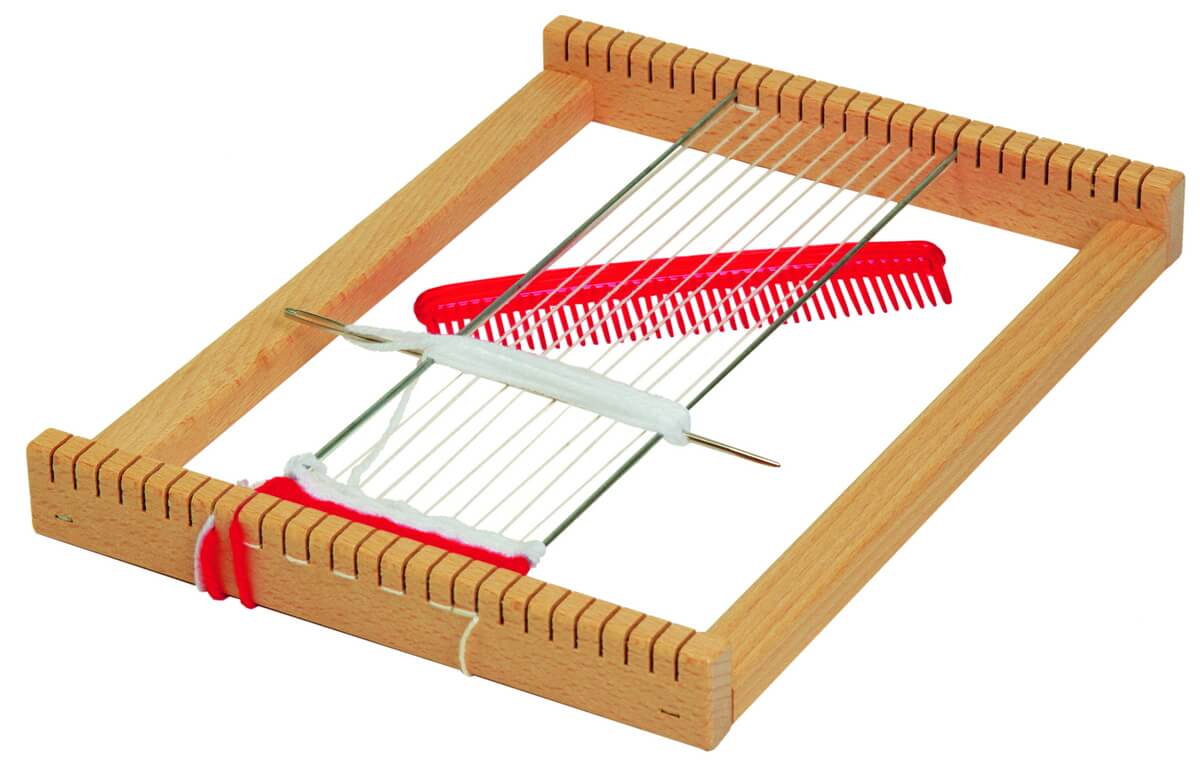 Von hand gefertigter Webrahmen, Webbreite 18cm. Hergestellt aus Buchenholz. Abmessung: 28 x 22cm (lxb) Kreative Handarbeit ergibt faszinierende Kunstwerke. Unser hochwertiger und handgefertiger Webrahmen aus Buchenholz hält über Generationen . Neben angewebtem Muster gehört zum Lieferumfang eine Webnadel, Anschlagkamm und zwei Metallschienen. Webbreite 18cm. Mit Prädikat "spiel gut" ausgezeichnet.