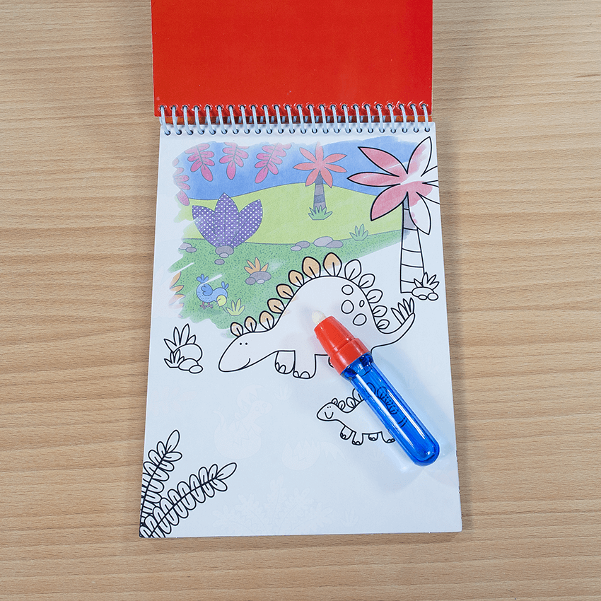 Toller Malspaß zum Wiederverwenden! Mit Water Magic Dinosaurier kannst du 6 tolle Bilder mit dem Wasserstift ausmalen. Es gibt 6 schöne Dino-Motive. Und so funktioniert: Fälle den Stift mit Wasser und male die Bilder aus. Die unsichtbaren Farben erscheinen beim Malen mit dem Wasserstift. Werden die Bilder wieder getrocknet, können sie beliebig oft ausgemalt werden. Ideal für unterwegs. Für Kinder ab 3 Jahren geeignet! Inhalt: - 6 wiederverwendbare Bilder - Wasserstift