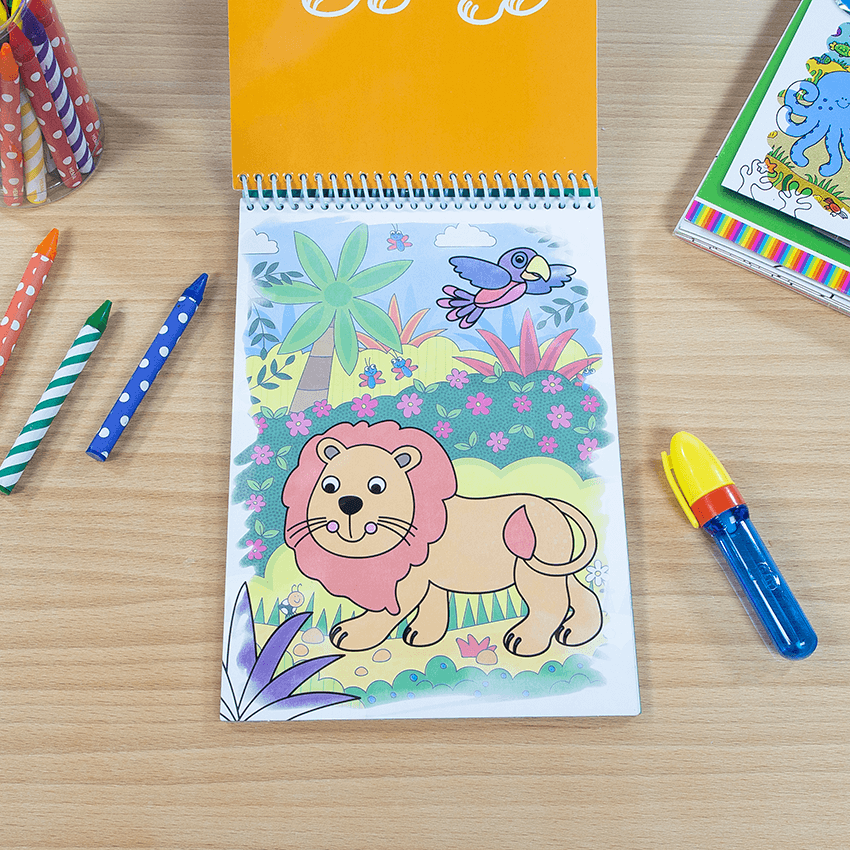 Toller Malspaß zum Wiederverwenden! Mit Water Magic Safari kannst du 6 tolle Bilder mit dem Wasserstift ausmalen. Es gibt 6 schöne Safari-Motive. Und so funktioniert: Fälle den Stift mit Wasser und male die Bilder aus. Die unsichtbaren Farben erscheinen beim Malen mit dem Wasserstift. Werden die Bilder wieder getrocknet, können sie beliebig oft ausgemalt werden. Ideal für unterwegs. Für Kinder ab 3 Jahren geeignet! Inhalt: - 6 wiederverwendbare Bilder - Wasserstift