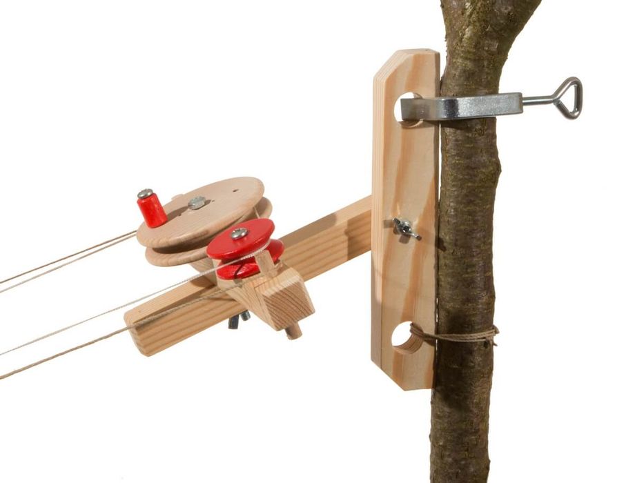 1) Die WINDE, die das Zugseil von einer Gondel aufwickelt. Eine Sperrklinke ermöglicht jederzeit eine Fahrtunterbrechung. Geeignet für eine Gondel.