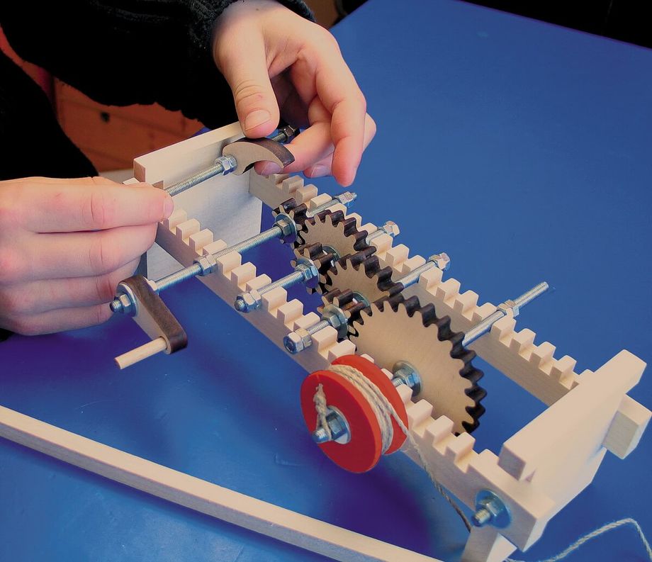 Zahnräder faszinieren und ermöglichen Übersetzungen ins Schnelle und Langsame sowie das Bewegen schwerer Lasten. Das Prinzip von Gangschaltungen und Uhrwerk wird anschaulich „begreifbar“.