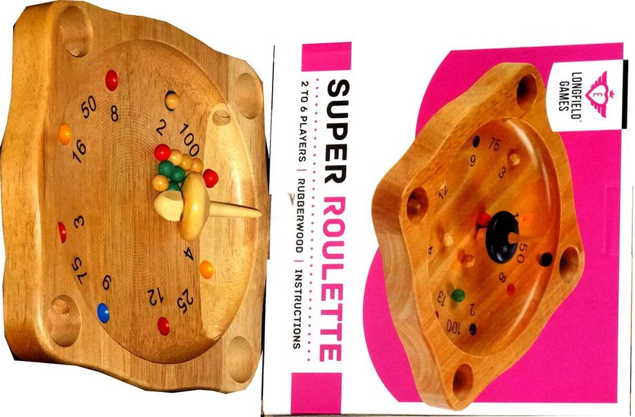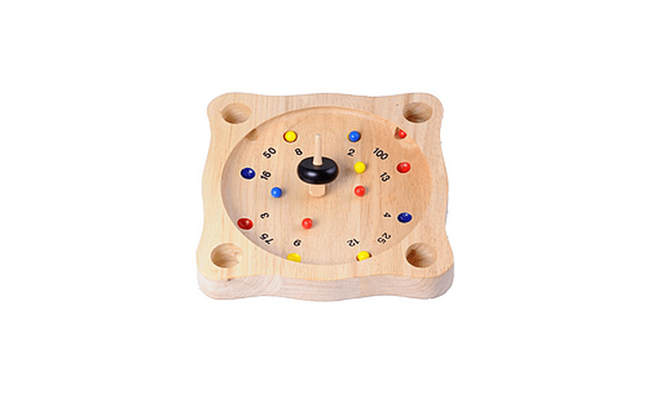 Spielbrett: Bambus, Maße 220 x 220 x 30 mm. Zubehör: Robinienholz, 1 Kreisel 8 Spielkugeln.