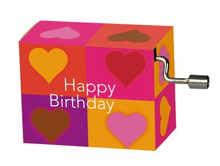 Kurbelspieluhr Happy Birthday "Rechtecke mit Herzen"
