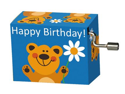 Kurbelspieluhr - Happy Birthday "Bär mit Blume"