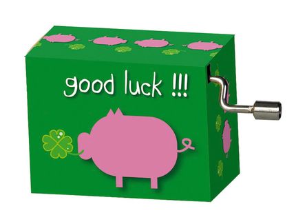 Kurbelspieluhr Happy Birthday "Good luck!, mit Glücksschwein